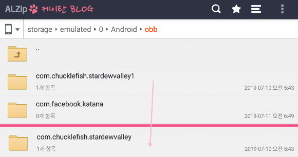 위 경로의 com.chucklefish.stardewvalley 의 이름을 바꾸는 것