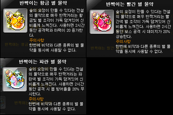 **반짝이는 수식어가 없는 그냥 'OO 별 물약'도 있는데