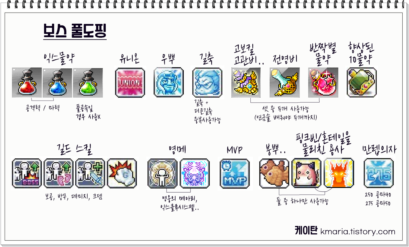 메이플 보스 잡을 때 필요한 버프 (풀도핑)