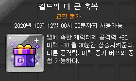 [ 30분간 길드의 축복 (공마 +20), 길드의 더 큰 축복 (공마 +30) ]