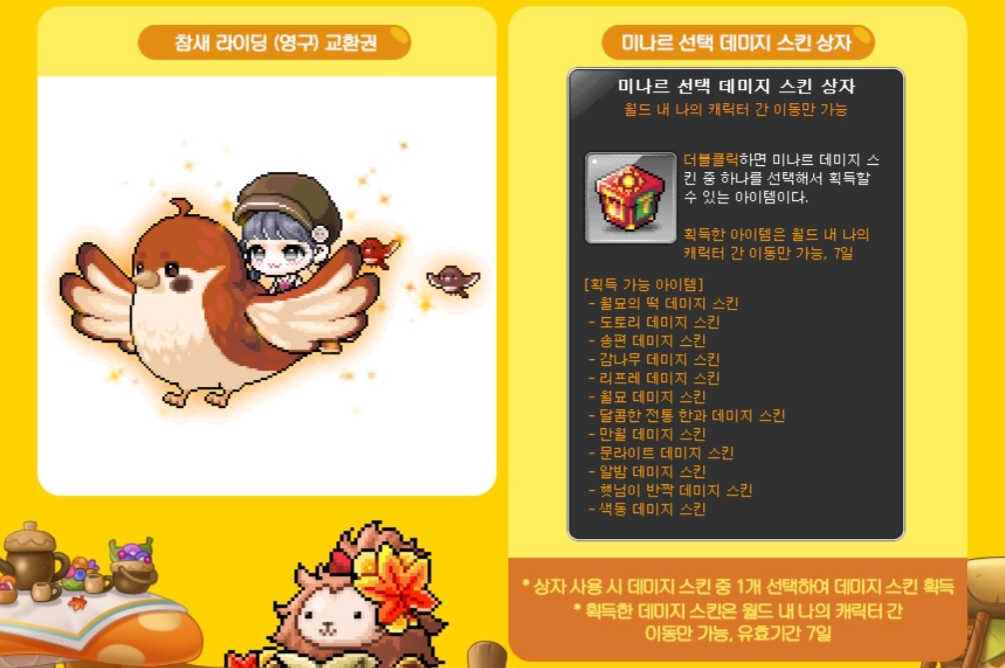 메이플 2023 추석시즌 이벤트 미나르 가을축제 기간 & 보상 정리